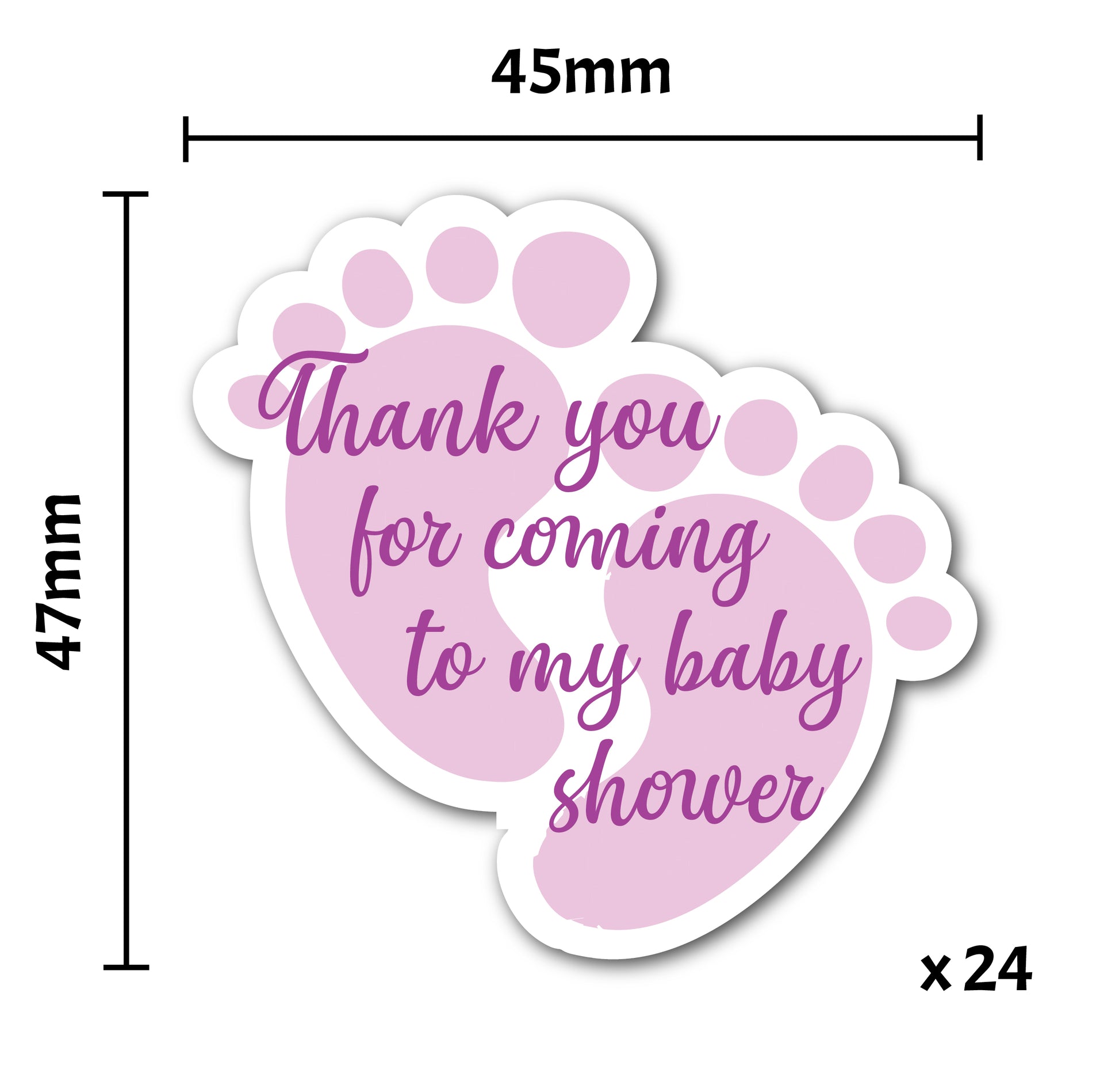 24 x Pink Girl Footprint Shaped Stickers - Thank You for Coming to My Baby Shower