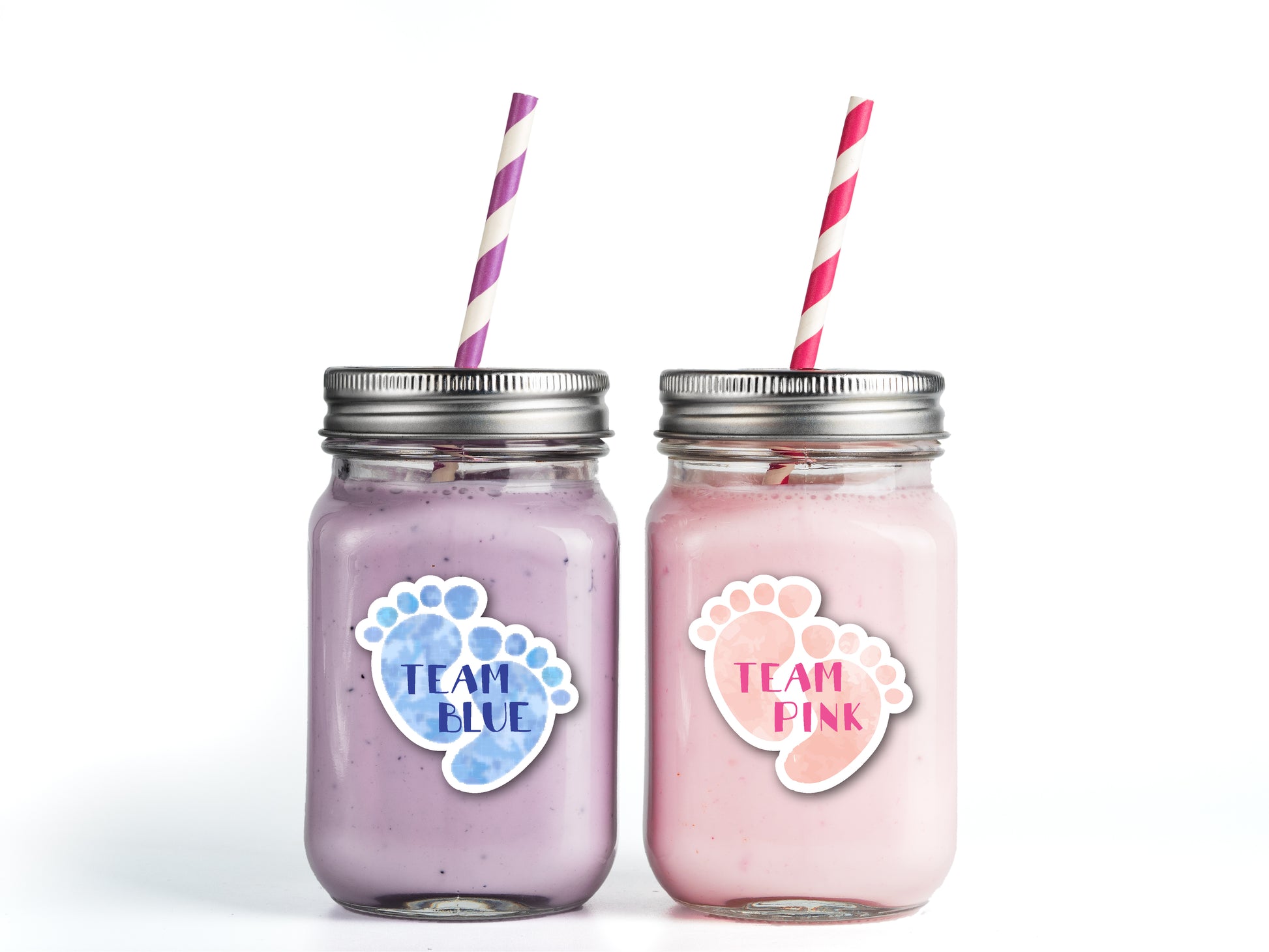 With 48 stickers (24 Team Pink and 24 Team Blue) These stickers can be stuck to drinks glasses, favours or anything you can think of! Designed, printed and packed in the UK supporting local businesses.